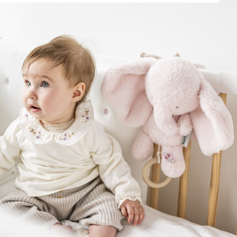 Maigās krāsās muzikālā plīša rotaļlieta ir īsts draugs jūsu mazulim. Pavelkot silikona riņķi, skan maiga “La-Le-Lu” melodija. Divas aukliņas ļauj to piestiprināt pie gultiņas, ratiņiem vai autosēdeklīša. Mazgāt ar rokām, neiegremdējot ūdenī.